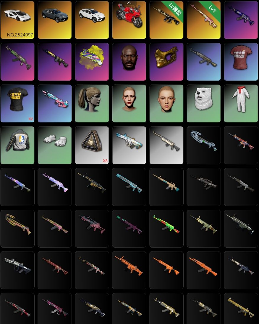 装备描述:家用不要租 不租家用 满兰博基尼/红色杜卡迪/黄金铬车漆/满级猪八戒M416/4级异色无信号/粉梦德拉贡/无重力mp5k/烟枪/毒液M762/毒刺大炮/绷带AKM/黑鬼/小兔MK12/DANIELLE女团套装/全套魔力甜心套装