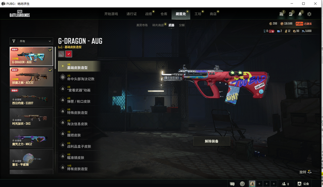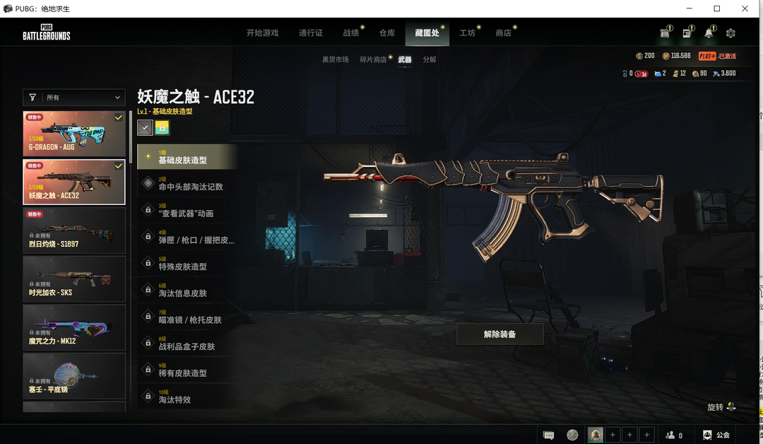 可排位✅成长型异色权志龙联名GD-AUG✅漂亮女团套成长型妖魔之触ACE32✅小蜜蜂✅金面具✅迈凯伦