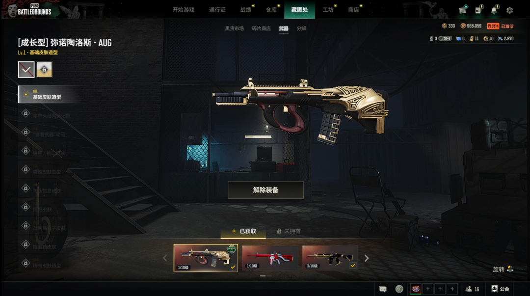 成长型弥诺陶洛斯AUG黄金SKS粉兔套百搭PGC帝皇套PGC群雄逐鹿套装