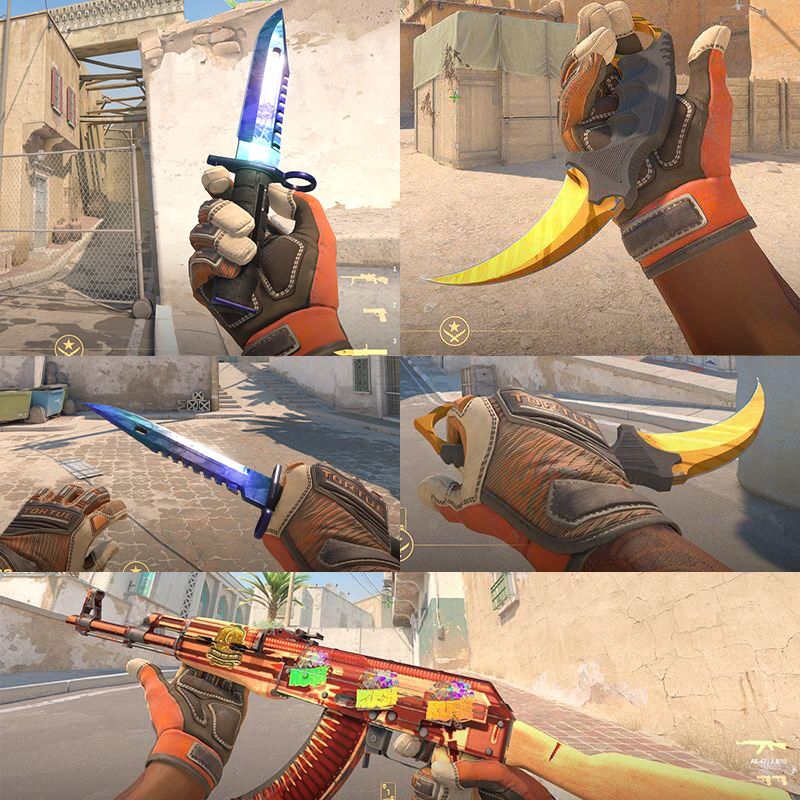 17❤️可完美✅【双刀】蓝宝石M9⭐虎牙爪子刀⭐老虎精英手套⭐X射线AK⭐印花集全⭐野火