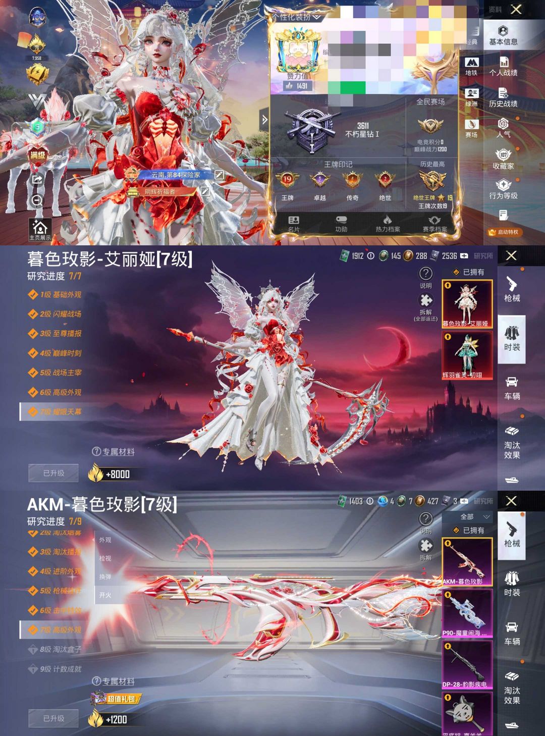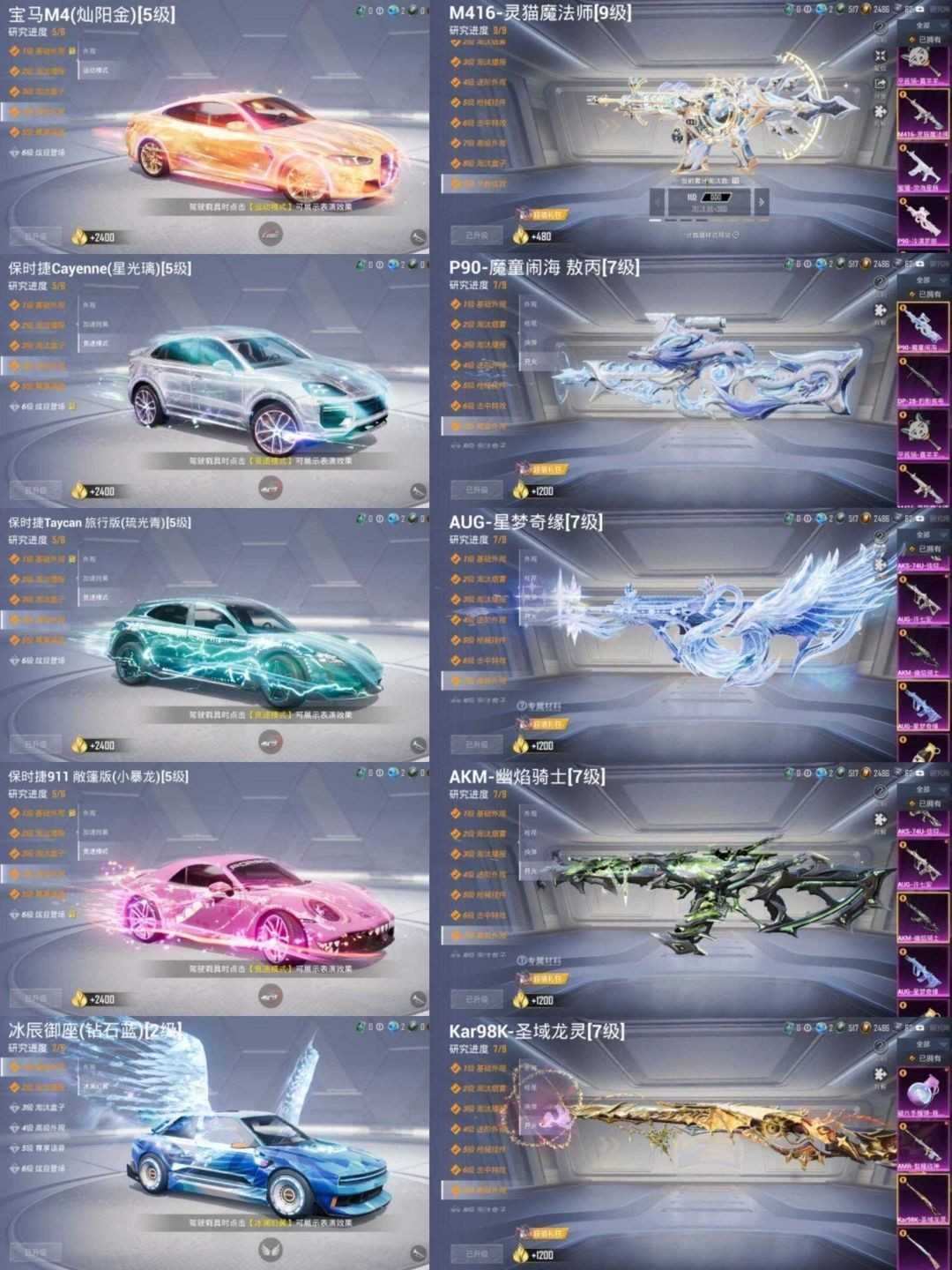 《云南84探险家》满级红装暮色玫影艾丽娅全套✨三辆五级保时捷五级宝马M4✨星梦奇缘AUG五把九级枪