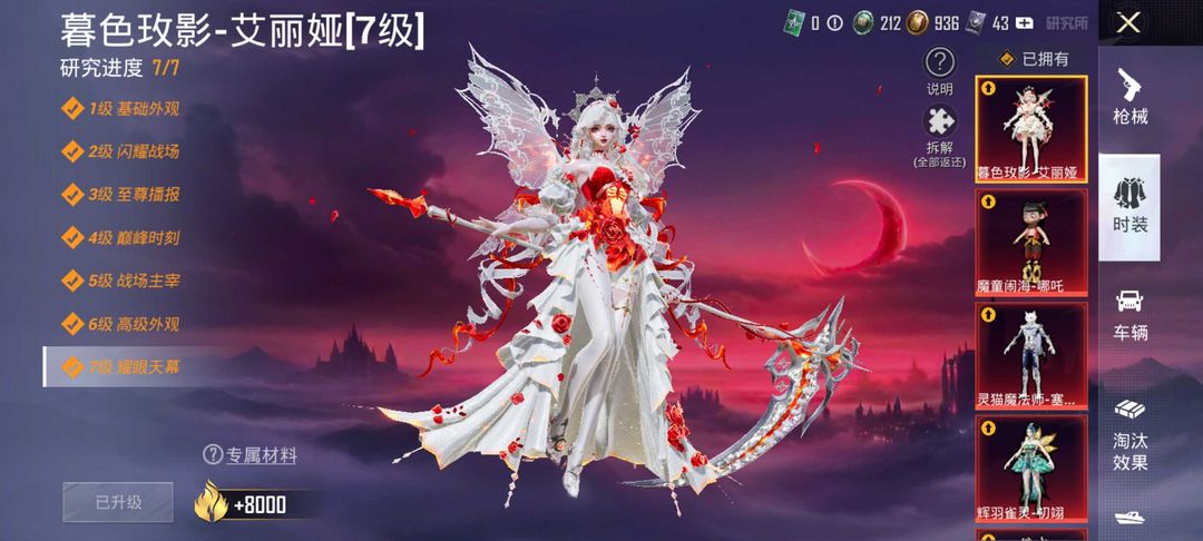 满级新红装暮色玫瑰艾丽娅❤️13红装✨图卡盟露米娜欧若拉✨2满级车帕加尼玛莎✨5把满级特效枪星梦奇缘