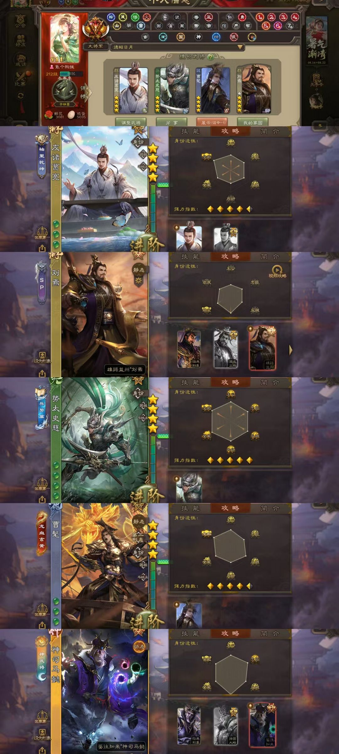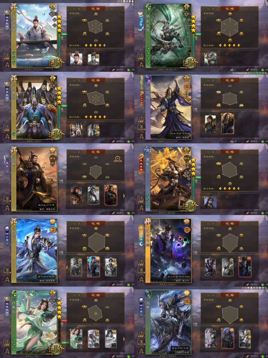 【有卡】一等大将军刘焉☀势陆郁生友诸葛亮势太史慈神司马懿☀双形态司马昭曹髦文鸯杜预☀孙寒华十常侍裴秀