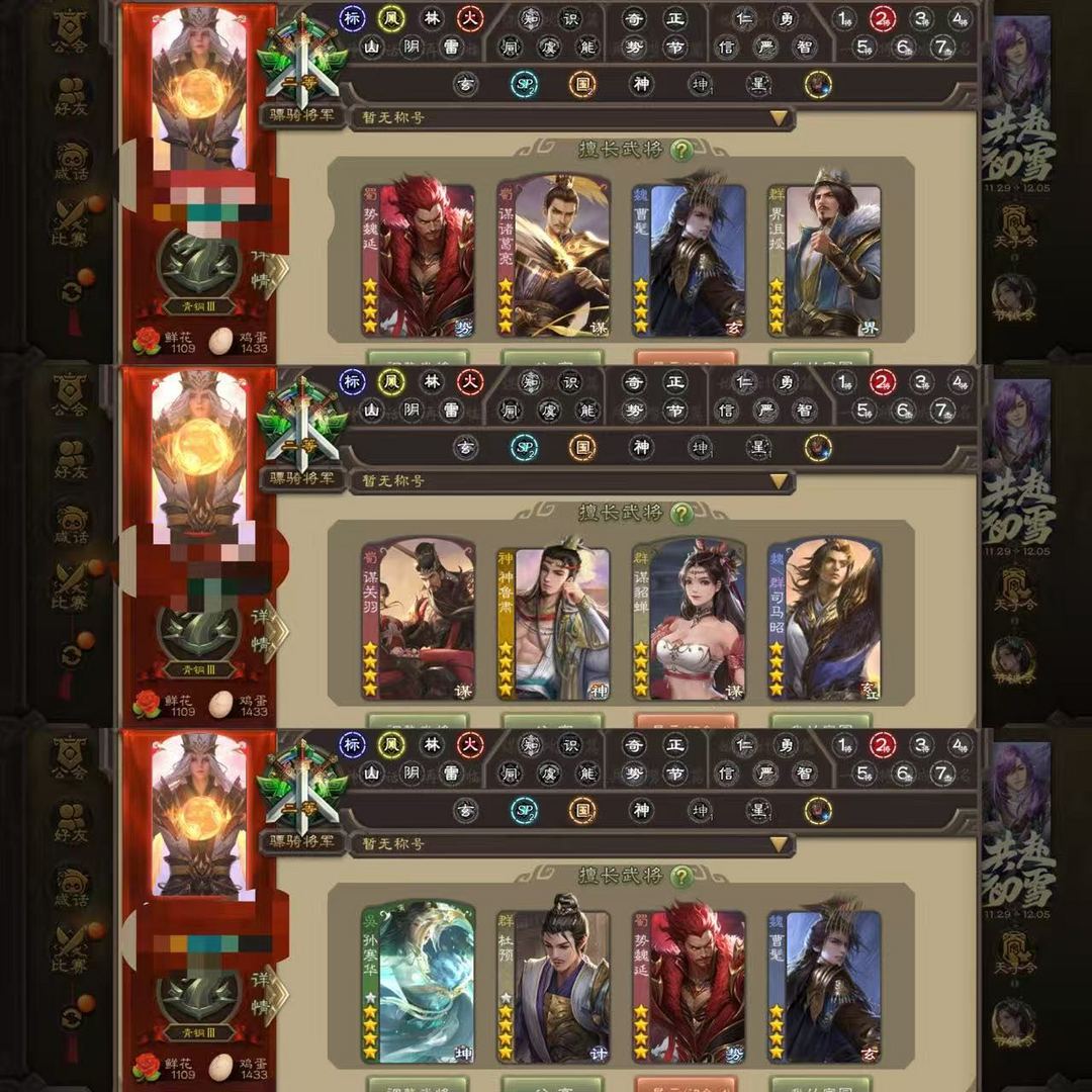 装备描述:【有卡三卡】势魏延曹髦界沮授龙跃凤鸣谋诸葛亮神鲁肃动谋关羽动谋貂蝉司马昭奇门孙寒华友徐庶杜预动界徐盛动留赞神陆逊