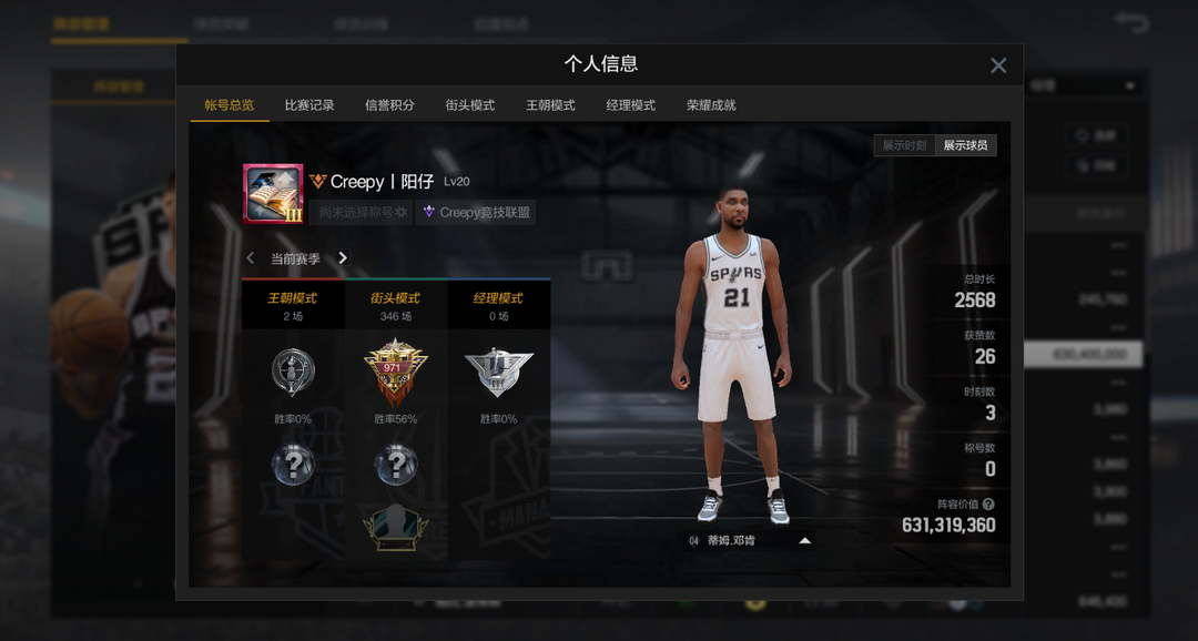 ⭐可排位,段位:名人堂⭐满突04邓肯,最新陈列室,历史第一大前锋⭐全能邓肯攻防一体⭐