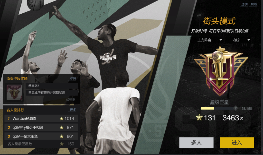 ⭐可排位,段位:全明星⭐满突双时刻张伯伦⭐篮球皇帝+棋逢对手⭐高段位炸鱼⭐