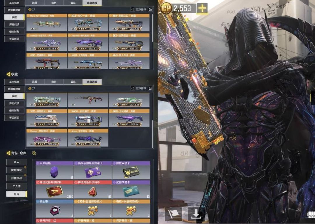 28满级神话武器⭐️6满级神话角色⭐️14传说角⭐️17典藏⭐️141传说武器❤️5传说载具